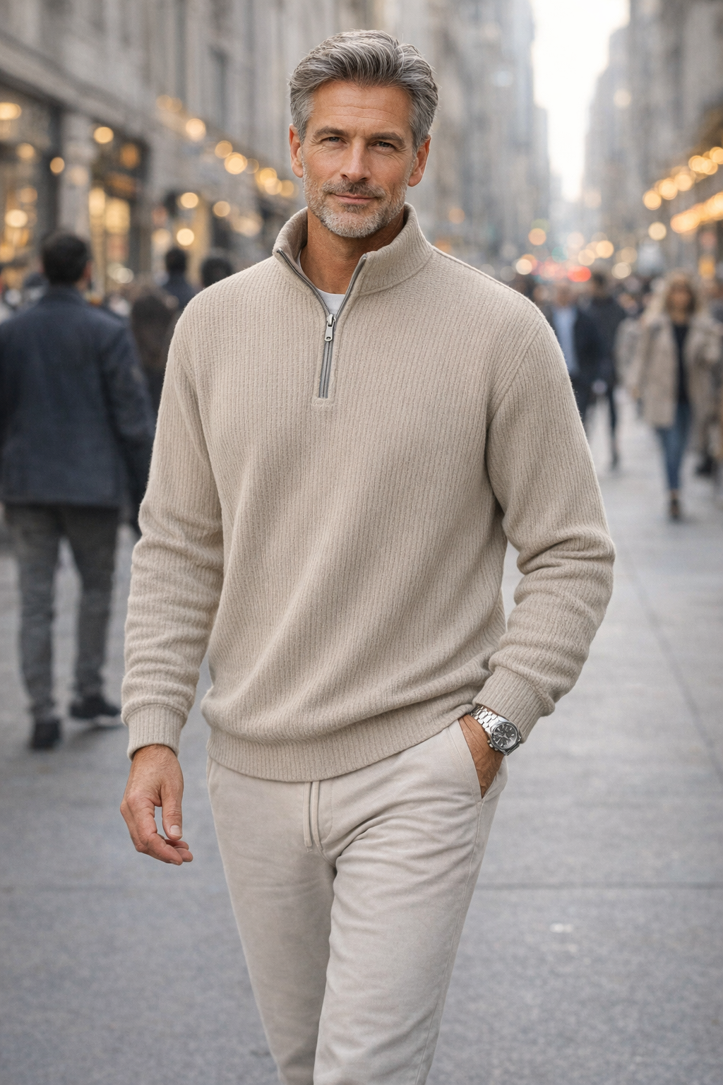 Der DAAN Zip-Pullover ist für Männer gemacht, die mühelos gepflegt aussehen wollen, ohne auf Komfort zu verzichten. Dies ist so ein Kleidungsstück, das du immer wieder aus dem Schrank holst: angenehm zu tragen, leicht zu kombinieren und immer passend für deinen Tag. Egal, ob du unterwegs bist, von zu Hause aus arbeitest oder das Haus verlässt – DAAN verleiht dir eine ruhige, selbstbewusste Ausstrahlung mit genau der richtigen Balance zwischen lässig und stilvoll.